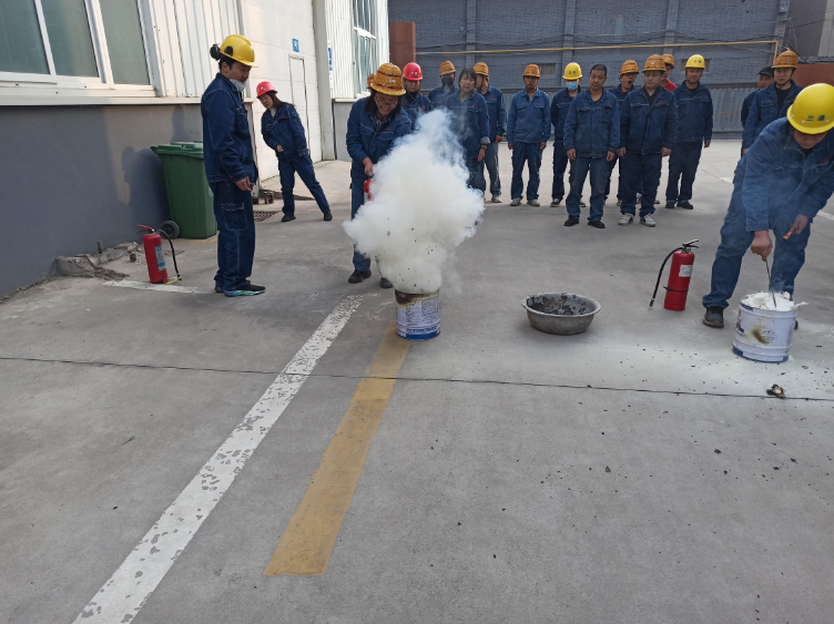 安全生產(chǎn)主管首先給全體員工講解了滅火器的正確使用方法,并現(xiàn)場進行了演示。在認(rèn)真聽講觀摩后,全體員工親自體驗了滅火的過程,在面對熊熊火堆,如何熟練的按照滅火步驟和方法,最終將火情成功撲滅。